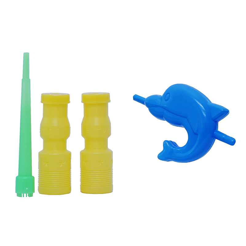 イルカの形をした水でっぽうとシャボン玉の2種類のあそびのセット
