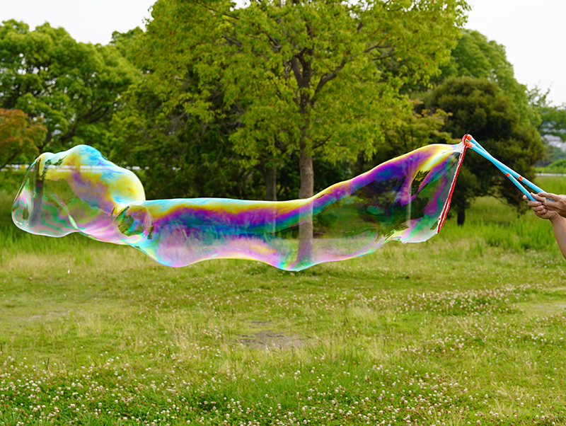 超巨大なシャボン玉を手軽にあそべる、2種類の道具と、プロも使用しているシャボン液のセット