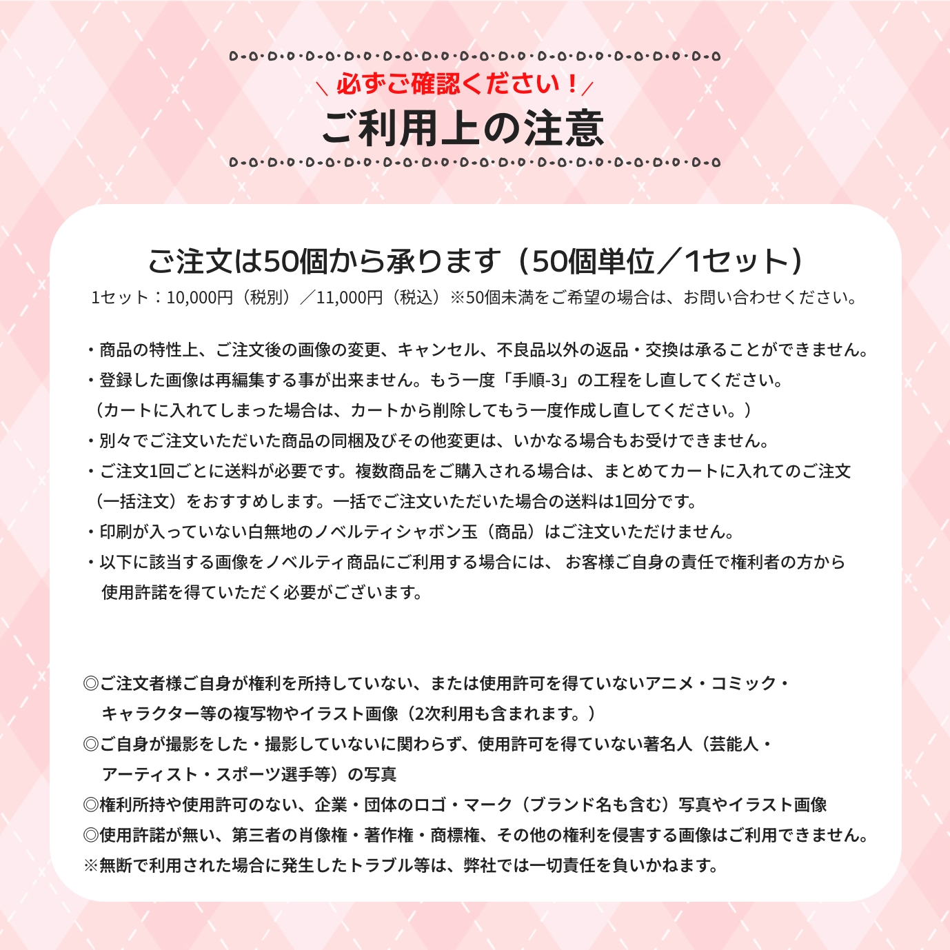 ・印刷が入っていない白無地のノベルティシャボン玉(商品)はご注文いただけません。